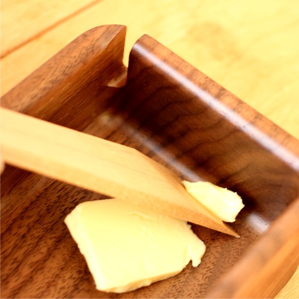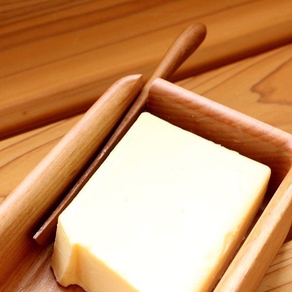 無垢材の塊から贅沢に削りだされた、木のぬくもり感じるバターケース。