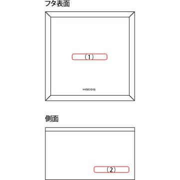 Hacoaオンラインストアでは、レーザー加工機によるお名前やロゴマーク等の彫刻加工を承っております。 右図の赤枠の部分に名入れが可能です。 ご注文が完了しますと、Hacoaオンラインストアより名入れのイメージ画像をお送りいたします。 ※2ヵ所以上に名入れしたい場合は別途お問合せください。 |