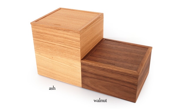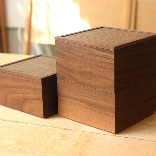 一段と二段の2種類があります。フタと箱は適度な遊びを持ちつつピッタリと収まります。(写真:ウォールナット)