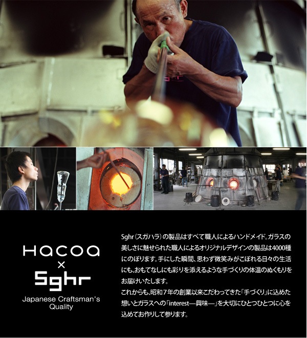 軽やかな印象に仕上げる為に厚みを、宙吹き(型を使用せずに作る技法)にて極限まで薄く仕上げました。