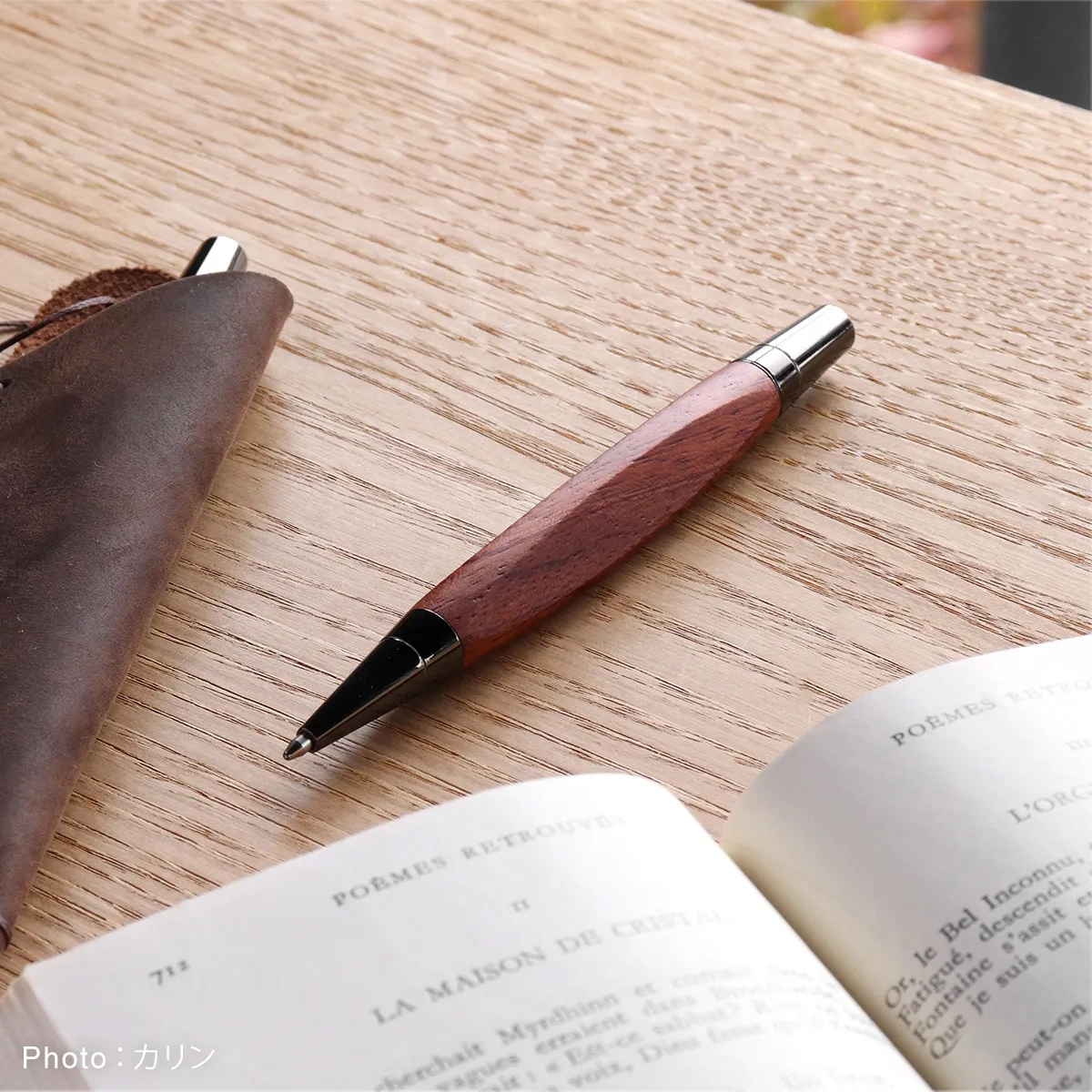 やわらかな三角形が指先に自然とフィットし、安定した書き心地を実現しました。使うほどに色艶が深まり、あなたの手のひらで時を重ねていく特別な一本に。