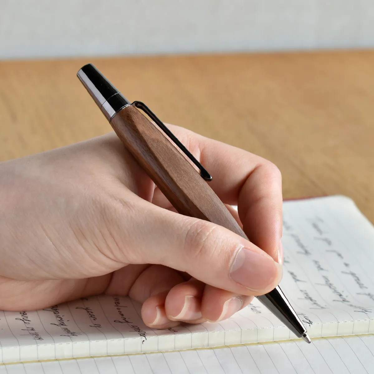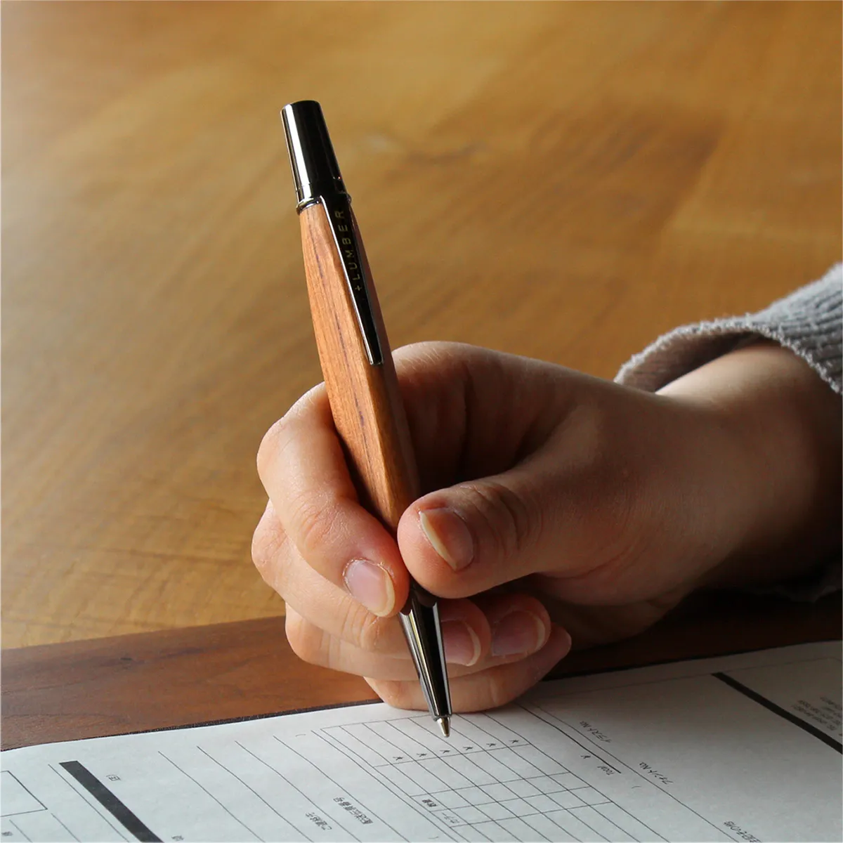 手にしっくり馴染む、三角のカタチをした木製ボールペン。
