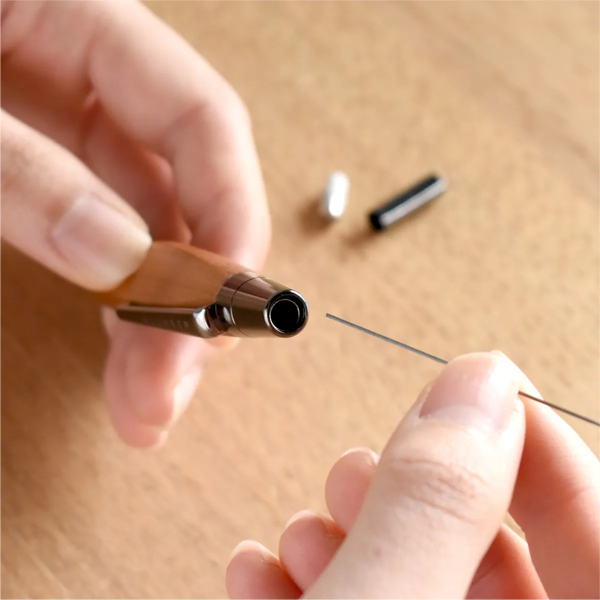 小ぶりなサイズのため、シャツの胸ポケット等にも納まります。(写真:シャープペンシル/ウォールナット)