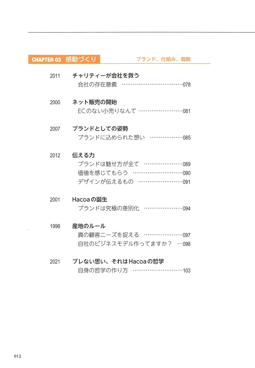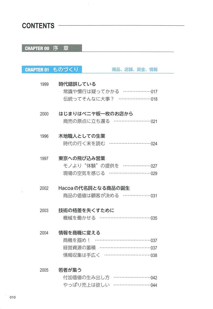 ガレージファクトリーでのものづくりとフリーマーケットでの販売を経て、2001年に「Hacoa」ブランドを起ち上げる。