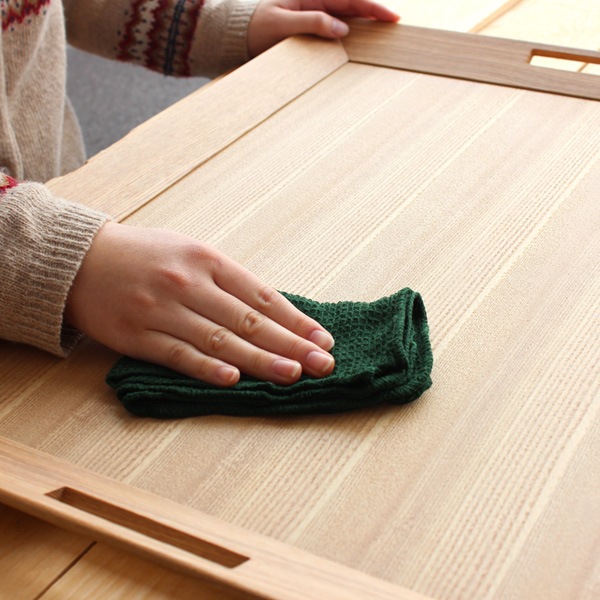 表面にはウレタン塗装が施してあるので、汚れが付いた場合も拭き取るだけで綺麗になります。(写真:タモ)