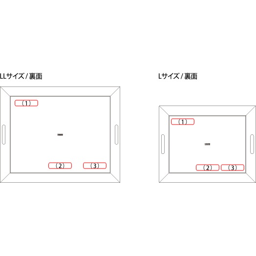 Hacoaオンラインストアでは、レーザー加工機によるお名前やロゴマーク等の彫刻加工を承っております。 右図の赤枠の部分に名入れが可能です。 ご注文が完了しますと、Hacoaオンラインストアより名入れのイメージ画像をお送りいたします。 ※2ヵ所以上に名入れしたい場合は別途お問合せください。 |