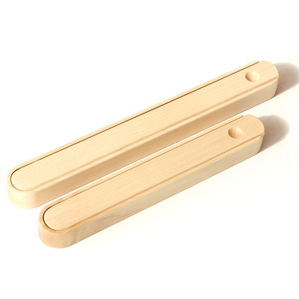 大人用の箸箱(上)と比べると、小ぶりで角の丸みが強調され、かわいいイメージになります。Hashi no haco Kid'sは、18cm位までの長さのお箸を収納する事が出来ます。(写真:メープル)